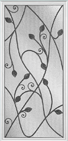 Iron Springs features a full panel of textured glass which provides a high level of obscurity and diffuses the appearance of the wrought iron from the inside of the home. Iron Springs features an energy saving low-e coating.
