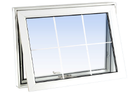 An operates much like a Casement window. It, too, opens by cranking a handle that pushes the bottom of the sash out, allowing air ventilation while keeping rain water away.